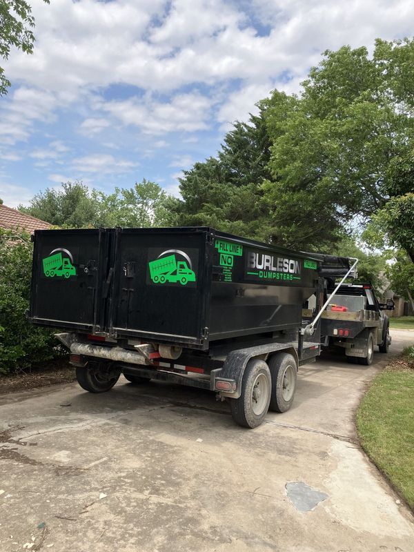 Burleson Dumpsters is your partner for all your waste management needs in Johnson, Hood, and Tarrant counties, TX. We've simplified cleanup projects since 2022, bringing years of expertise to every rental. Family owned, we know the unique requirements of local projects, with a range of dumpster sizes to suit any job, big or small. We're committed to making your cleanup process as smooth as possible, with flexible rental options including daily, weekly, and monthly terms.